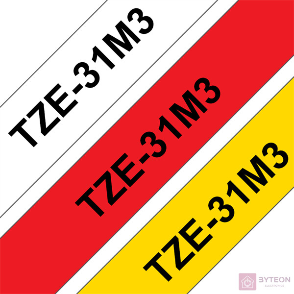 Brother TZe-31M3 Piros, fehér és sárga alapon fekete – 12mm széles