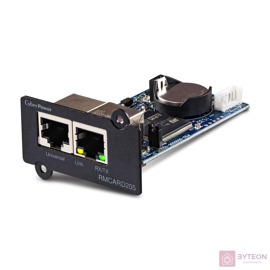 A CyberPower RMCARD205 egy adott CyberPower UPS sorozathoz tartozó opcionális kiegészítő. A kártya behelyezésével az UPS SNMP / HTTP hálózatba kapcsolással a felhasználók szabványos webböngészőkön távolról felügyelhetik és vezérelhetik az eszközöket egy irodában, kiszolgáló helyiségben vagy adatközpontban, a hálózati menedzsment rendszeren (NMS) vagy parancssoron keresztül (SSH és Telnet). A menedzsment feladatokat is elvégezhetik, beleértve az ütemezett leállásokat, indításokat és újraindítást.