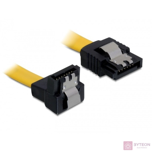 Ez a Delock SATA-kábel különféle SATA-eszközök, például merevlemezek, vezérlőkártyák vagy Flash-memóriák belső csatlakoztatását teszi lehetővé. A kábel megfelel a legújabb szabvány előírásainak, és akár 6 Gb/s adatátviteli sebességet biztosít. Visszafelé kompatibilis a korábbi SATA-verziókkal, azonban kizárólag az adott átviteli sebességet teszi lehetővé. Ha a kábelt egy merevlemezhez csatlakoztatja, a kábelt lefelé tudja elvezetni. A csatlakozókon lévő fémkapcsoknak köszönhetően a kábel megbízhatóan rögzíthető.