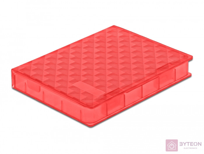 Ez a Delock kézreálló doboz használható 2.5 HDD vagy SSD tárolására és szállítására. A merevlemez vagy SSD sérüléstől védett és kosztól, valamint portól mentes marad. Van egy beépített nyílás a SATA csatlakozó számára, így a merev lemez vagy az SSD összekapcsolható egy számítógéppel anélkül, hogy ki kellene venni a dobozból.