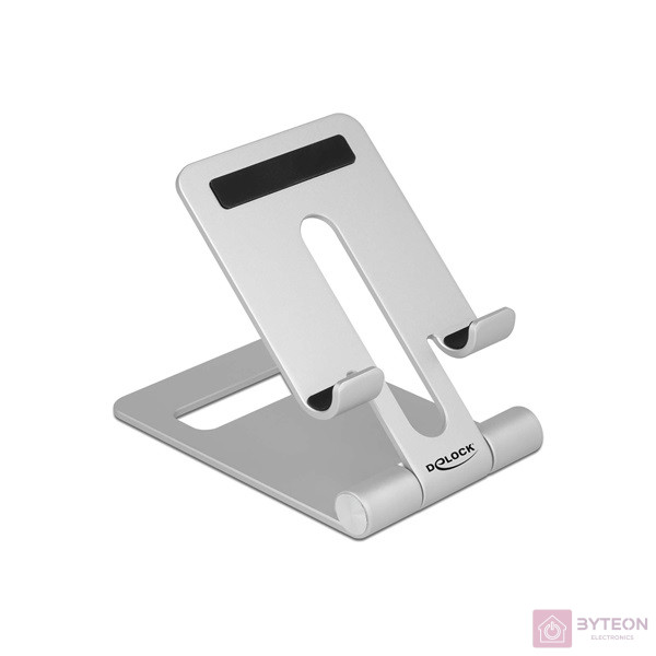 Ez a Delock okostelefon állvány nemcsak a dizájnnal, hanem a stabilitásával és a funkcionalitásával is lenyugöz. Az állítható szögnek köszönhetoen az okostelefon bármilyen helyzetben elhelyezheto és stabil marad. Az alsó oldalon és a tartóban rögzített gumibetétek biztosítják, hogy se az okostelefon, se a tartó ne csússzon el.