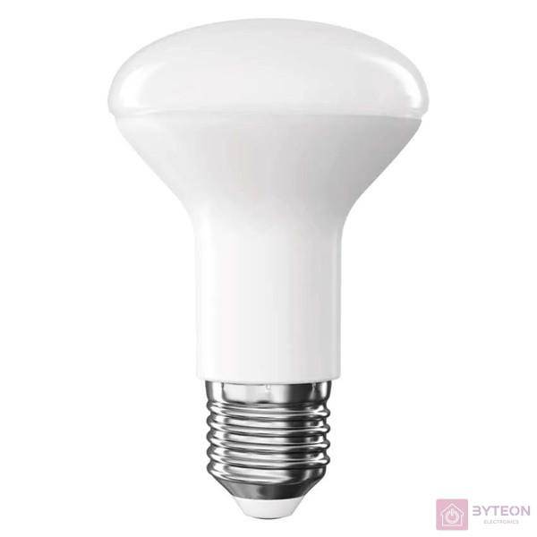 technológia: LED, foglalat: E27, fény színe: természetes fehér, helyettesítő: 60 W, forma: R63, fényáram: 806 lm, színhőmérséklet: 4 000 K, fogyasztás: 7 W, sorozat: CLASSIC, fényhasznosítás: 115 lm/W, energiaosztály: E, sugárzási szög: 120°, élettartam: 30 000 óra, garancia-időszak: 3 év, teljesítménytényező: 0.50, kapcsolási ciklusok száma: 30 000, színvisszaadási index (CRI): Ra >80, chipek típusa: SMD, feszültség: 230 V~/50 Hz, méretek: 63 × 63 × 97 mm, értékesítési csomagolás: 1 db, kis doboz