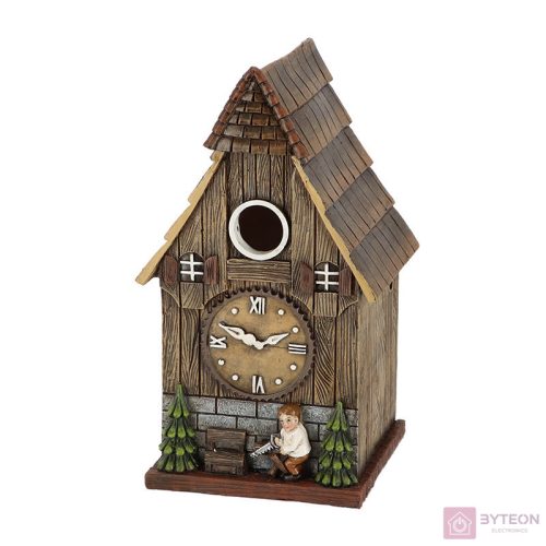 Kakukkos óra alakú, dekoratív madárház. A műgyantából készült házikó ellenáll az időjárás viszontagságainak, szélnek és esőnek. Kiváló menedéket és fészkelési helyet biztosítanak a cinkéknek a kertben vagy az eresz alatt. A 27 mm átmérőjű nyílás ideális a legtöbb cinegeféle számára, így vendégül láthatod a széncinegéket, a kormosfejű cinegéket, a kékcinegéket és a búboscinegéket is. A ferde tető alatti kis lyukakon szabadon áramlik a levegő, ezért nem melegszik fel az odú belseje nyáron sem. A madárház alja levehető, így ha épp nincs lakója a madárháznak, egyszerűen tisztíthatod. Az előfúrt hátoldalnak köszönhetően pillanatok alatt rögzítheted egy fára vagy akár a házfalra is. Teremts otthonos hangulatot szárnyas barátaidnak is ezzel a dekoratív kiegészítővel, mely garantáltan a kert dísze lesz!