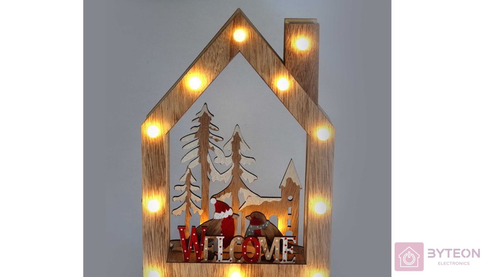 Karácsonyi ház alakú madarak mintás/20x30x5,5cm/meleg fehér LED-es fa fénydekoráció