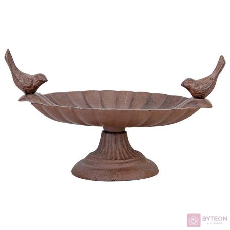 Gyönyörű öntöttvas madáretető tál, amely a kismadarak fürdőzésére is kiválóan alkalmas. Az egyre szárazabb nyarakon és zordabb teleken az állatok egyre kevesebb élelmet és vizet találnak, de egy kis odafigyeléssel könnyen segíthetünk nekik. Kertünk pompás dekorációja lehet és a madarakat is közelebb csalogatja. Anyagának köszönhetően időtálló, tisztítása egyszerű. Öntöttvas jellegéből adódóan külső elhelyezés esetén, a korrózió megjelenésével egy patinásabb, rusztikusabb termék válik belőle.