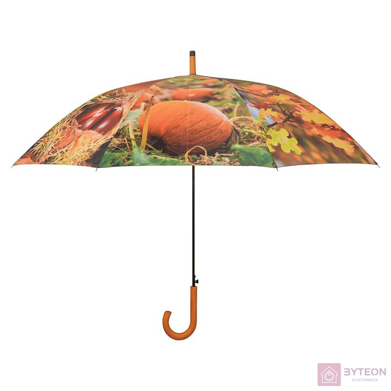 Nagy méretű esernyő 8 féle őszi mintával az oldalán. Automata nyitással, fekete színű fém szerkezettel és lakkozott fa markolattal rendelkezik. Az esernyőn gesztenyék, tökök, gombafajták, levelek, makkok és tobozok láthatók. Kifejezetten ajánljuk a természet kedvelőinek.