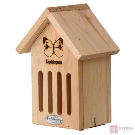 Pillangó ház pillangó mintával. A gyönyörű, napsütéses, nyári napokon mindenfelé pillangót láthatsz. A hűvösebb időben azonban mindig elrejtőznek. Ez a ház ideális hely pillangók számára, hogy a hűvös és nyirkos időben menedéket nyújtson. Ha a pillangók kedvére tennénk, helyezzünk gallyakat a pillangóházba. A pillangók szívesen időznek rajta, miközben bent vannak.
