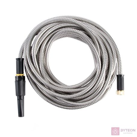Rozsdamentes acél kerti locsoló slag, 10 m – A rozsdamentes acélból készült 10 méteres locsoló slag rendkívül tartós és ellenálló, ideális választás a kertedhez. Az erős anyag biztosítja, hogy a slag hosszú élettartamú legyen, még intenzív használat mellett is. A rugalmas kialakítás könnyű kezelhetőséget biztosít, míg a 10 méteres hossz elegendő mozgásteret kínál a nagyobb kertekhez is. A rozsdamentes acél nemcsak a megbízhatóságot növeli, hanem a modern megjelenést is, így ez a slag nemcsak praktikus, hanem stílusos kiegészítője lesz kertednek.