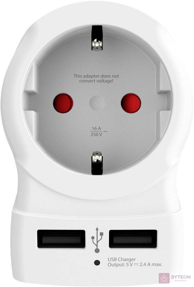 Skross UK csatlakozó átalakító és USB töltő egyben, Európából Egyesült Királyságokba utazóknak. A 2 x USB bemenet lehetővé teszi az okostelefon és táblagép egyidejű töltését, míg egyidejűleg földelt eszközzel is használhatjuk (laptop, hajszárító).